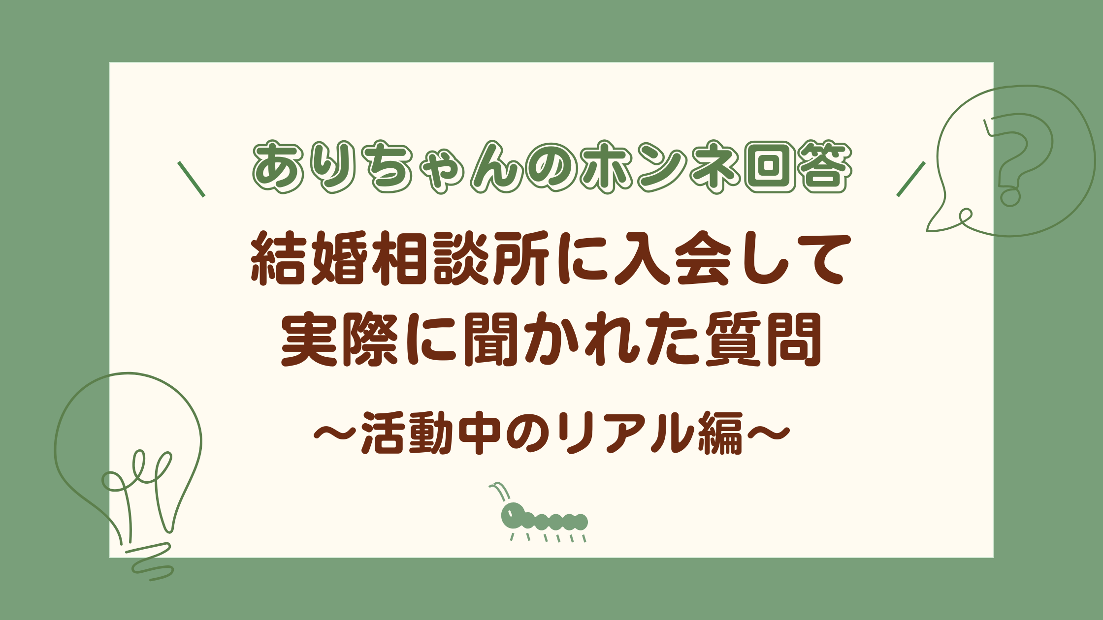 実は、20代で結婚相談所に入会したことを話すと、周りの人から結婚相談所に関して質問を受けることが多いんです。